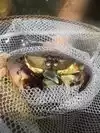 There is an area by the wall that has rocks (very slippery) where you can see crabs during the low tide.