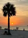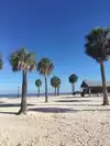 Great little beach. Lots of shade under palm trees or the shelters with picnic tables. There is a place to buy something to eat, and restrooms/changing facilities. Water is clear but greenish in colour due to the nearby reeds etc. Beach is sandy but not manicured like Clearwater. It was just a lovely spot to chill. Very safe for children too as water was shallow for quite a distance, and no real waves to worry about. They can even go looking for crabs! We saw dolphins and a pelican whilst there, and lots of fish when looking over the end of the small wooden dock. Only reason I didn't give it 5 stars was because it took us 2 hours from Kissimmee. Think there are closer beaches. However, if you like it less crowded and less commercial this is definitely a beach worth visiting. Sunsets are wonderful too!