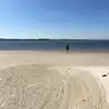 Not your typical beach with waves and deeper water. You. An walk out very far and only be waist deep. Water was clear and wonderful. And the best part was the dolphins we saw swimming by. Three groups! They were beautiful!!! Highly recommend for a lazy afternoon!!