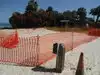 Adorable beach, perfect if you have children as it is very calm and the playground is great. Nice beach volleyball court too.