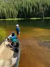 This is such a wonderful place to visit. Beautiful and peaceful little lake with amazing views. It's full of multi-species of trout. Great for fly fishing or bait fishing. My bait fishing tip is to bring small red worms (not the big size) and/or wax worms. Don't use weights. Just let the worms float with a bobber. You will catch for sure if you use this method. The trout are finicky, but there are plenty of them. We rented canoes and fished around the entire lake. Excellent catch and release for kids. You should be aware that you will need an SUV/Jeep/4X4 or a vehicle with good shock absorbers to get there. The 5.5 mile road is really potholed and rocky, and while safe, it's a very bumpy slow ride (45-50mins). I did it with my 83-year-old dad and two young kids, and they were happy, but there was a lot of laughing and moaning for the long ride there. On the way out of it we got comfortable and drove faster so it was a little better. It is worth the drive, but I would have been more concerned if we were driving a regular car vs an SUV.