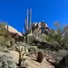 For moderate hikers, Pinnacle Peak is a refreshing, 3.5 mile trek. Up, down, up, down, through fields of rock and blooming cactus, the views are great. Toward the end of the hike, there's a sign warning of a strenuous path ahead. Heed this! Turn around when the sign says trail ends, even when the trail continues. Likely head on to private property if continuing. Plenty of areas to rest and some steps along the trail. I suggest a walking stick and hiking boots, as terrain is a bit slippery, due to sandy gravel in some places.
