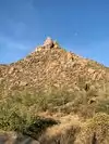 This trail is literally in suburbia, surrounded by homes, and is quite a busy trail. It is nice fairly easy hike. You do not hike to the pinnacle, but skirt past the base of it, then continue on down a neighboring rocky hill overlooking Scottsdale. It is an out and back hike , 1.5 mile, one way, and you can always turn around at the posted high point if you’re not interested in the walking down and then back up the last hill. Note: no dogs allowed.