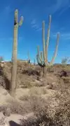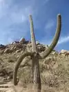 We recently moved to Phoenix and have hiked on quite a few trails. So far, the Pinnacle Peak Trail has been a favorite due to the scenery and good trail conditions. It appeared that this trail was planned out well - some other trails that we've hiked seemed like they had turned into trails just because a lot of people had walked there. The trail conditions were relatively good, with steps and not a lot of the loose rock and gravel that we've noticed on other trails. There are no forks, so easy to follow.