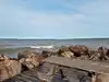 We finally got the bridge and walked down to the beach. We found many pieces of driftwood there. This is a great trail to bring your children and pets. We saw many there enjoying their day.