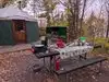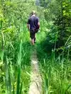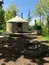The trail from the parking lot to the yurt is closer to a mile in length, with lots of narrow wood plank sections. However, the road beside the outhouse leads straight out to the road and is much less of a trek. To get to the yurt this way, turn right out of the parking lot and walk about a quarter mile down the road to the SECOND green gate on the north side of the road. There's nothing much to see other than the creek but being alone in the middle of a huge forest is very tranquil and soothing. The mosquitoes are vicious. Bring some of those green coils with you. Family Dollar in Ontonagon has them, four coils for a dollar. Don't use the yellow bug spray in the food box, as the label says not for use on humans. It's only for clothes.