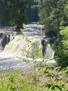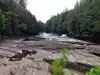 Presque Isle Scenic area. 1.9 mile one way to see 3 waterfalls. There's 3 parking lots. The lot across from the fee booth is for the barrier free Nawadaha Falls. The other 2 require a boardwalk trail with many stairs. You can make a loop by taking the trail on the other side of the river - 2.3 mile loop. There's 2 other parking lots that are larger.