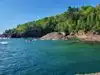 The park is located very close to town. We stopped at one of the first areas along the east side and when we reached the overlook we were surprised that we were so high off the water and taken by the beauty of the rock cliffs. We continued to the end or black rock area. It was a very warm day and there were a lot of kids jumping off the rock. It was a little to much for us, given the number of people and no one was wearing masks. We found a nice spot just a little further down the peninsula and caught a little sun, waded in the the water and found some shade. The gorgeous views were enhanced by a sea plane. This park is an absolute gem!!!!