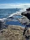 Be sure to take the 3.1 mile drive around the loop of this isle. Be sure to look for the quick right turn off as you descend the hill a short distance away. You will find off to the right the cliffs where the young people jump off the cliffs into the cold water. Then continue past the parking lot off to the left to climb the black rocks both attractive and unique to reach the area where the kids jump off. The whole is scenic as you drive around.Also, you can do some hiking