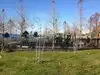 Big park, decorated for Christmas (Dec 2014) water fountain for pets . play equipment for children and a small water feature for children.