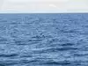 We were on a fishing trip, and saw 8 whales bubble feeding. They all came up together to feed twice while we were watching and then slowly dove down, with their tails arching one by one. What an amazing and beautiful sight
