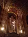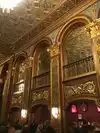 Stunning theater artfully decorated with intricate gold leaf details throughout the ceilings and walls. Not a bad seat in the house.