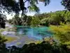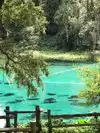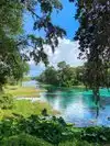 Beautiful clear cold water surrounded by lush green tropical foliage. Not super crowded and just good family fun. Beautiful lush trails to a short hike to a small waterfall . Very relaxed and chill.