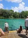 Actually getting into the springs itself is easy - you can dive off the dock, ease down one one of the ladders, or use a large wide set of steps situated at the far end of the dock. There is also a mechanical lift to make it possible to enjoy the springs if a visitor has a disability that challenges their entry.