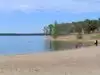 A large lake that does not have trees jutting up through the surface. Seems to be a popular destination for boaters and campers and has large beech with picnic area. Some sites are right on the lake and park is clean. One marina only which is a couple miles away that rents out a handful of pontoons.