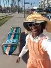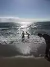 This is a lovely beach along the edge of the Pacific Ocean. Many tourists as well as locals like to visit there, to swim or to surf or to fish. There are many restaurants there along the boardwalk
