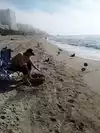 Nice beach, clean and well taken care by patroling police and bay watch. Restrooms clean, nice way for walking and cycling. Not too mayn people there. Nice place to be.