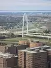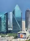 It's a huge skyscraper downtown and you can pick it out of the skyline and you can take an elevator up to the top for a view of the city. Wait for good weather. A new landmark downtown.