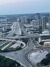 Amazing view of the beautiful highway bridges and surrounding cityscape. However, once the blue hour started and the highrises started to light up, that's when I got my best photos. The crowd was jovial and the vibes were good. It was very humid and hot (in 90s) but the indoor spaces were air conditioned to help cool off. Plenty of interactive displays and nice atmosphere inside. Staff was very nice and I think the price of a ticket was well worth it. This is a must if your visiting downtown.