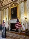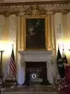 (1) The governor's meeting room, with real gold trim work and a reknowned, expensive George Washington portrait