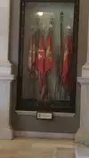U.S. Marine Corps. statue and accompanying flags.