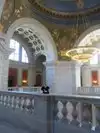 What beautiful architecture! We went in to look around and were guided to the library on the second floor, where a free half-hour tour was starting. We got to hear about the history of the building and its very impressive and beautiful architectural details and also got to enter and see the chambers of the house and the senate. Oh! And there's a huge Gilbert Stuart painting of George Washington to see -- with the image of his face that's on our dollar bills. Very recommended -- seeing this building doesn't take long and is well worth it.