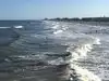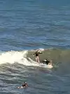Benches along the pier before you get here. People fishing or just sitting down watching the surfers .