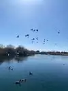 Beautiful lake where wildlife gathers. My grandson likes to there and feed the ducks, geese , fish and turtles. Family friendly with clean restrooms and picnic tables