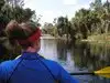 My wife's uncle and his wife treated us to a tandem kayak trip. We went down the river first and saw heron's and huge turtles, but no alligators. The tree canopy kept us shaded and comfortable. Very relaxing and enjoyable.