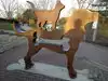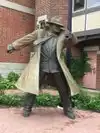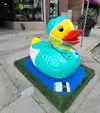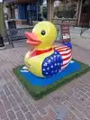 The Riverwalk in the downtown Naperville area is a great place to walk and wander. There are many shops, restaurants and sites to take in the area. Parking is available but a bit limited during busy times. There is no fee to enter tge Riverwalk though sone available activities require fees. There are many statues and works of art to take in the area including three statues on the RoadsideAmerica.com list: Dick Tracy, the Cat in the Hat (at the library) and Dark Naper. The Moser Tower and Millennium Carillon are visible along the Riverwalk. When we were there in July, there were decorated ducks all over this area.