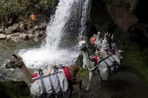 Lovely drive through winding road nestled among trees and river, with options to stop along the ways. It felt like hiking and the views are nice, but in the comfort of your ac-ed car and no sore legs. We drove this after our morning hike, since our legs were sore but we still wanted to explore. The hiking trails get crowded during the day. Cars parked on the sides, making tight fits on some parts of the trail. The picture with the llama shows the pack llamas that bring supplies to Mt. Conte. They are shown passing the Grotto Falls. There is, unfortunately, no llama tour. I kept looking for llama tour because of this picture. :)