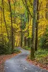 This road is very narrow and windy and steep. There are several areas to pull over to enjoy the stream and woods. Some parts are a real tight squeeze due to narrow road and cars parked on road. It is not at all straight forward finding the entrance to the road, but go to traffic light No. 8 and take a left as you approach from the north.