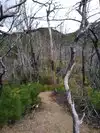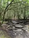 The trail is easy to follow. It is very peaceful and beautiful. We went after it rained and there were running streams by the car. This would be good for a person that has a hard time walking.