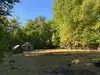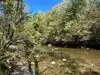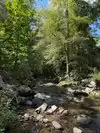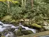 Cute little park on the right with picnic tables as you enter this motor trail for a lunch break right beside a beautiful mountain stream.