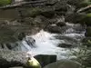 We intended to go hiking to some falls but found that the parking was full with people waiting to park ahead of us we decided to skip the hike and instead found parking on a nice stream and spent the next hour letting our grandkids splash around .