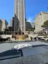 This is a historical landmark located near the time square area. It's a place where tourists come to take photos, ice skate and shop. There are shops located under the plaza.