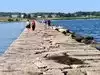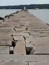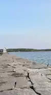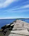 Long walk, but lovely view once you get there. If you have animals, please take some water on a hot day (for them and yourself). It is nearly a mile out and not an easy mile. The rocks are flat but still uneven so wear some hiking boots if you have them. I wore walking shoes and after a while the hardness of the rocks took it's toll on my poor feet. Be careful of the cracks, one women stepped wrong and sliced her leg open. If you want to look at the boats going by, please stop to look. One wrong step and you would be quite a ways from getting help. If you bring young children or small pets, be prepared to carry them. I saw one stroller sitting in the rocks to the side so I imagine it was too difficult to maneuver between rocks.