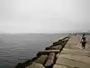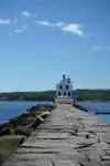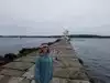 It doens't look all that far but believe me, it is. Especially with the wind blowing hard. There are these huge slabs of granite laid out on the breakwater with large cracks between that you need to walk over to get to the light house and it is pretty close to a mile long. You walk out into the ocean, basically, and their is nothing to keep the wind from tearing into you and the water from the waves from getting you. Wear good hiking boots and warm clothes if you aren't there in the summer. There are no bathroom facilities at the end and then you have to walk back again! It's certainly worth doing at least once.