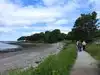 A 3/4 mile walk over fairly level granite boulders suggest you be careful as their are some gaps in the boulders— not a good idea for persons who need walker assistance. Beautiful view of passing boats— of the town from about a mile away— of the islands in the distance.