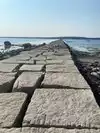Don't take this walk lightly and be prepared. There are no facilities at the end, NO bathrooms or water, etc., so plan wisely. Take everything with you that you think you might need. Carefully watch your footing, as there are many large cracks in the breakwater. Otherwise the scene is beautiful! Clear water near the rocks of the breakwater, blending into rich deep blue as the sea runs into the horizon, sailboats anchored nearby or with sails full traveling to the distant coastline. The Lighthouse is the cherry on top at the end of the walk. We love them and check out all that we can. You can't go inside, but you can walk all around it. Also, be aware that once you get back to the parking area, there are no restroom facilities there either! A wonderful treat for us on a cool end of summer blue sky day!