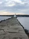 I almost missed this place but saw a small sign on the road from Rockland to Camden that said lighthouse. I had no idea I would be walking on a breakwater! Yes, it’s about 7/8 of a mile one way, looking down at my feet most of the time, but I thought it was a cool (safe) experience. Other reviews are correct…every time you look up it feels like you still have a long way to go. The lighthouse is not open but I’m glad I made the trek. I was leaving close to sunset and the light hitting the breakwater was beautiful. Definitely a unique lighthouse visit! Just watch your step and take your time. You can find parking close to the water or if it’s full, there is a lot/field that you can also park in and make a short walk along the road to the starting point.