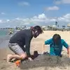 Rockport Beach is a great area for families. The beach has a small playground area for when the kids want to take a break from the waves! They also offer covered areas with seating and pits to bbq while out at the beach
