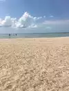 Absolutely outstanding Gulf beach with an ocean side and a lagoon on the opposite side. Ocean side is a shallow sandy beach with waves and a long pier for fishing. Lagoon side is shallow and without waves which was perfect for our 2 year old twins to safely play in the water. All areas had thatched overhead shade on the beach with playscape and picnic areas. We will definately make this a family Gulf destination.