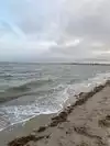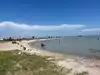 Nice family beach. Shallow water, cabanas and picnic tables. Sand was somewhat gravelly and water was extremely warm due to shallow water. No waves.