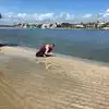 2. Water. It's not "crystal clear". It's the same as Port A. It is true that you have to walk hundreds of feet to get to waist deep water. If you want to go out to neck level you're barely going to be able to see the umbrellas back on the shore...you have to go far out. It feels like an optical illusion when you first see people that far out still standing in such shallow water. If your kids are into body boarding, it's not going to happen here. If you go out rally far you can get an ocean like wave experience only the waves don't break.