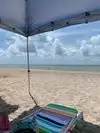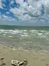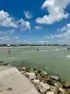 Small beach with shallow water. Lots of palapas and picnic tables for shade. Cleanest beach you will find in a Texas. City takes pride in their jewel!