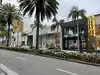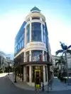 A street of expensive shops in Beverly Hills. One repeats finer shops along the entire length of the street.