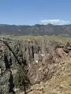 The scoop is; it’s $35 a person ($28 online according to our local friends). It’s not a National Park and the prices are exorbitant. So, step one; stop at the Canon City Visitor Center which is on the south side a the west end of the Veterans Park. There is a lady there that is full of factoids and stuff you can do. She told us that there’s an overlook that’s free; just drive into the parking and as you are driving it’s on the right side right by the fire hydrants (no parking). The parking is a circus and buses roll in by the dozens, literally. As you are driving down the hill leaving the park you will see a day picnic and overlook area called “The Elkhorn Loop and Picnic Area.” The road was rough, it’s less than a mile long. When you get to the part that is closest to the canyon, get out of your car and walk down the hill. You can take beautiful photos up and down the canyon. On the way back to Canon City you will come across the Skyline Drive. Only take it on the way home, it’s one-way and ends in Canon City. You can’t take motorhomes or large vehicles up there. Unbelievable. Built by the prisoners in the Canon City in 1905. Scariest drive in the world. The Jeep tours go up there if you’re not up for a death-defying drive. If you want to spend some money, take the train through the canyon. I believe it said it goes once a day out of Canon city.