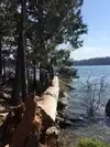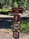 the trail is easy and winds you along some popular (campground) beaches and offers various views of the mountains and lake, but the BEST PART of the trail is the small, rustic, unique lighthouse. You aren't going to find the standard house-sized maritime lighthouse... but instead something that looks like an outhouse, barely big enough for one person, but with it's very own history and claim to fame.