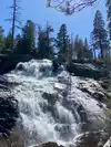 This was a perfect trail for us. We did 14 miles in Yosemite 3 days before so were not looking for anything strenuous. This trail offers excellent views of Lake Tahoe finishing with the falls. The walk on the road back up to the parking lot was killer. Thank goodness we had a ride waiting.
